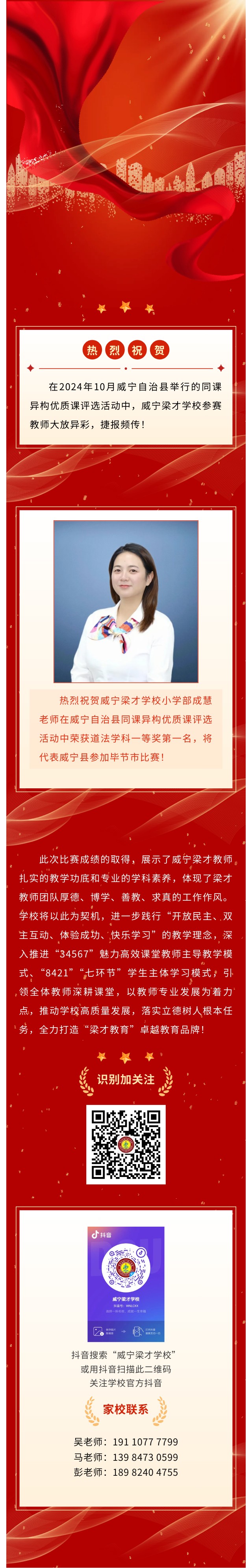 下一篇:热烈祝贺威宁梁才学校廖俊杰老师在威宁自治县同课异构评选活动中喜获一等奖第一名!
