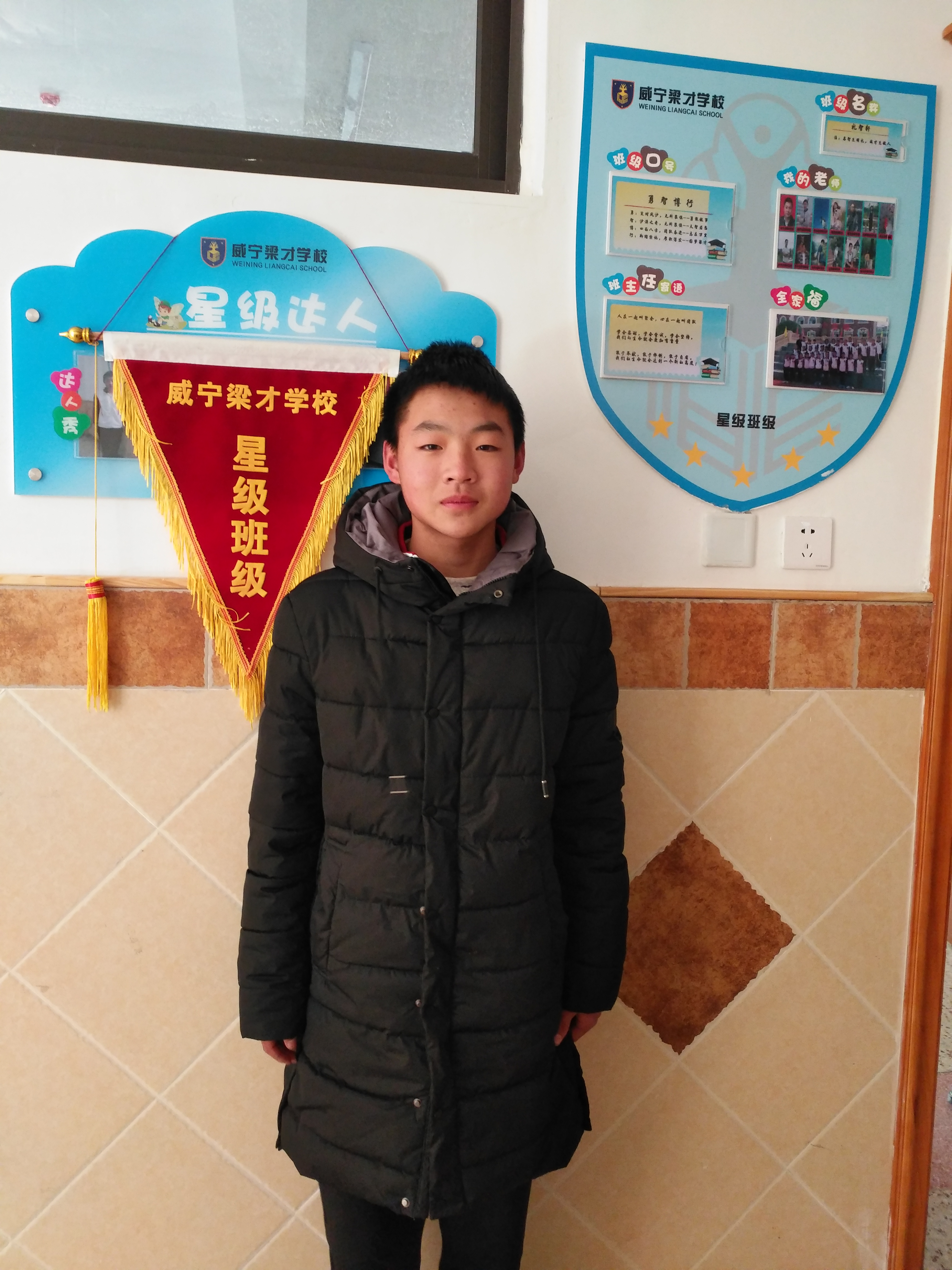 杨亚洲,学习优秀,自觉遵守班规班纪,校规校纪,并影响着身边的同学自觉遵守纪律,良好的班风需要这样的榜样,希望更多的同学向他学习!